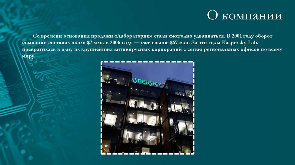 компании составил около $7 млн, в 2006 году — уже свыше $67 млн. За эти годы Kaspersky Lab.