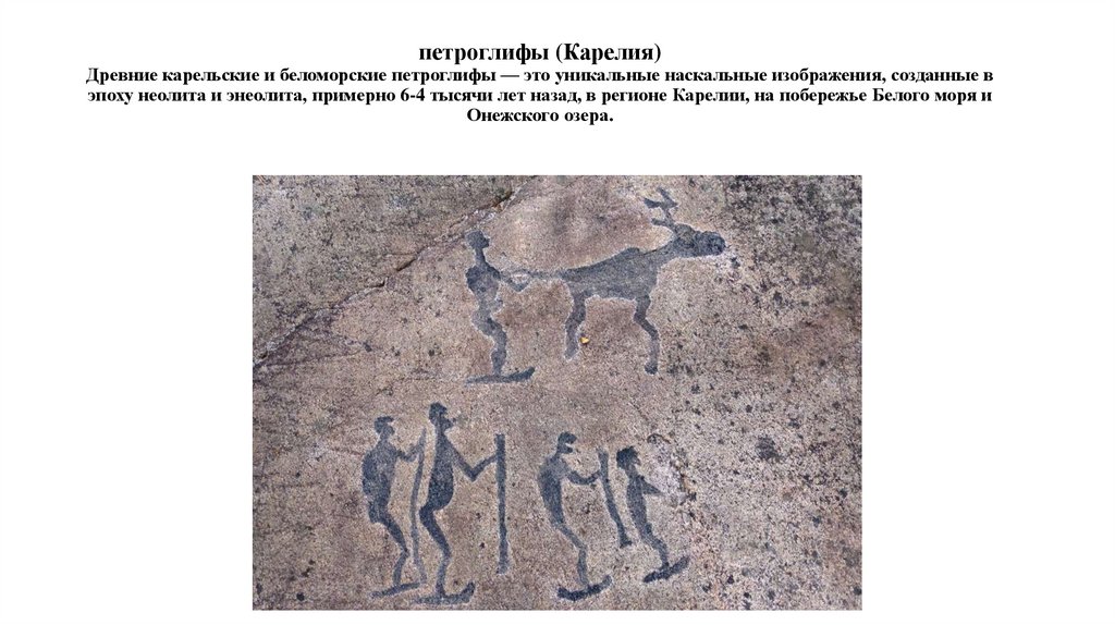 петроглифы (Карелия)Древние карельские и беломорские петроглифы — это уникальные наскальные изображения, созданные в