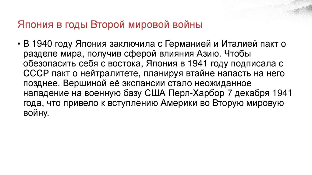 Япония в годы Второй мировой войны• В 1940 году Япония заключила с Германией и Италией пакт о