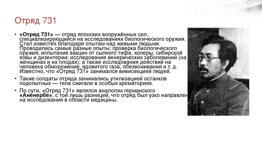Отряд 731• «Отряд 731» — отряд японских вооружённых сил,