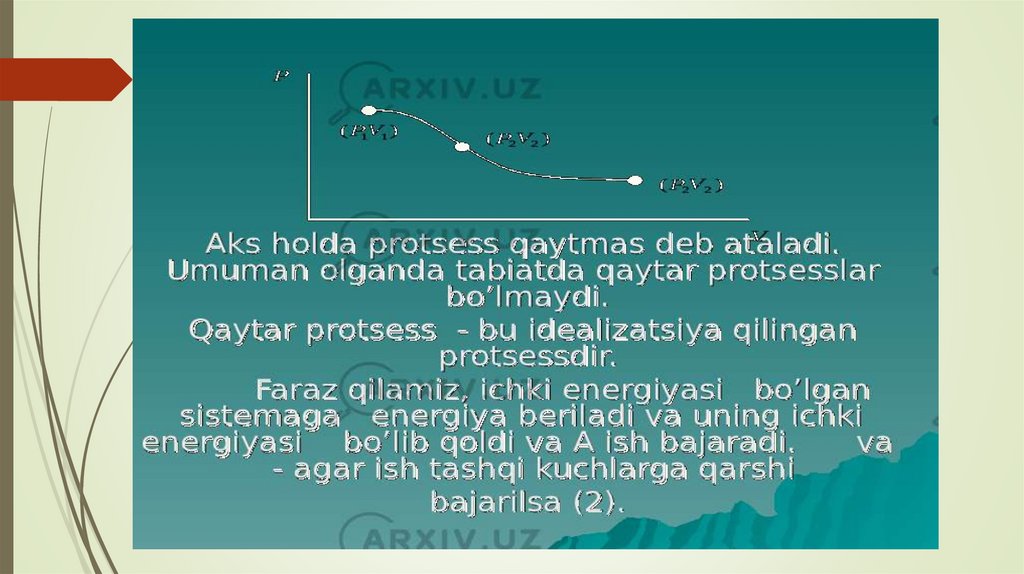 uzluksiz qatoridan iborat. Sistemalarda Qaytmas jarayonlar