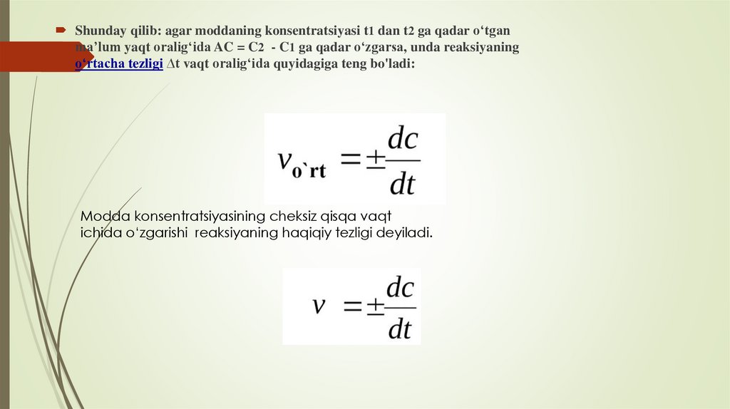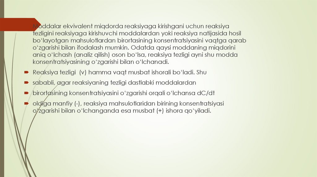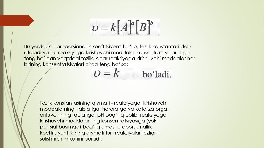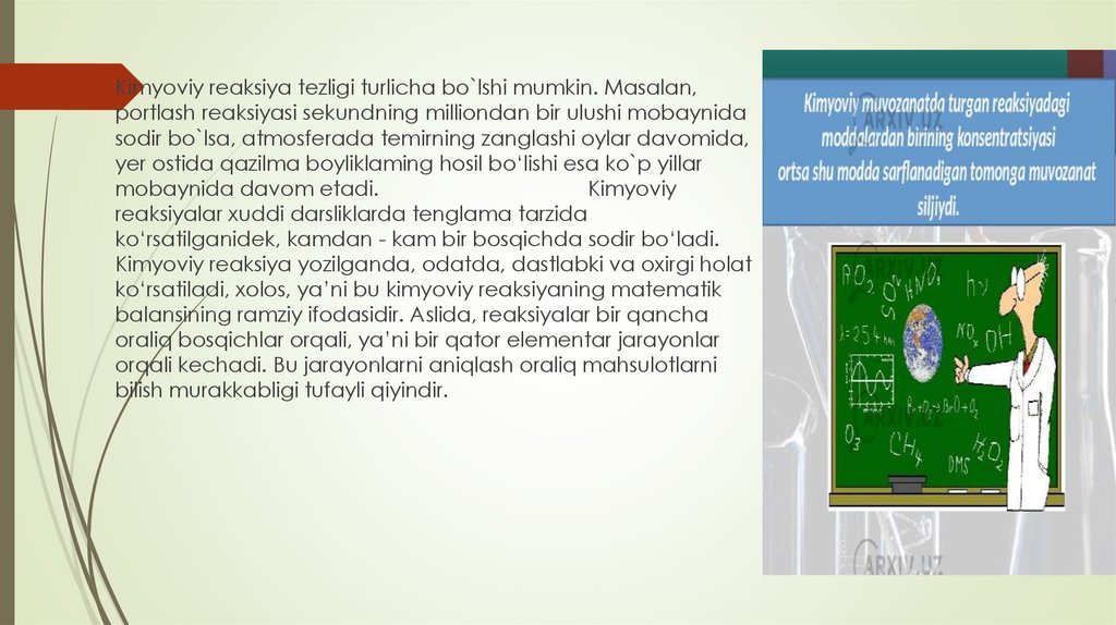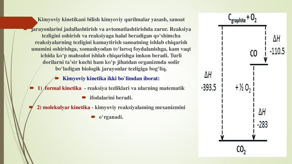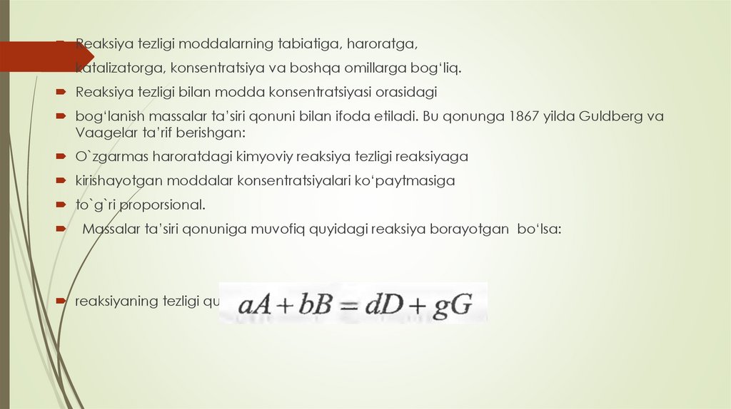 tezlikka ta’sir etuvchi omillarni esa kimyoviy kinetika o‘rgatadi.