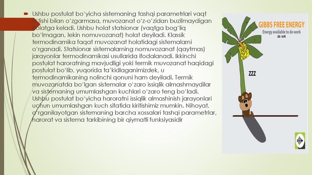 foydalaniladi. Avvalambor, sistemaning termodinamik muvozanati haqidagi