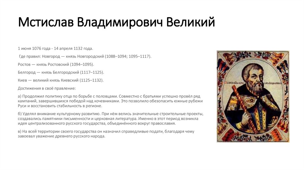 Мстислав Владимирович Великий1 июня 1076 года - 14 апреля 1132 года.