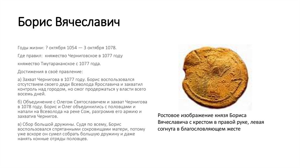 Где правил: С 1069 по 1079 год в Тмутаракани.