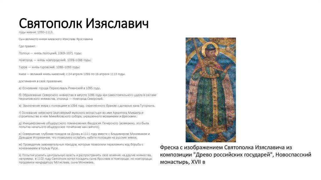 Где правил: Новгород — князь Новгородский (1088–1094; 1095–1117).