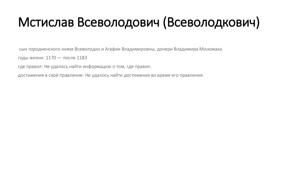Мстислав Всеволодович (Всеволодкович)сын городненского князя Всеволодко и Агафии Владимировны, дочери Владимира Мономаха.