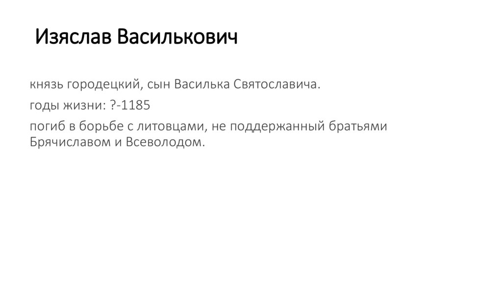 Изяслав Васильковичкнязь городецкий, сын Василька Святославича.