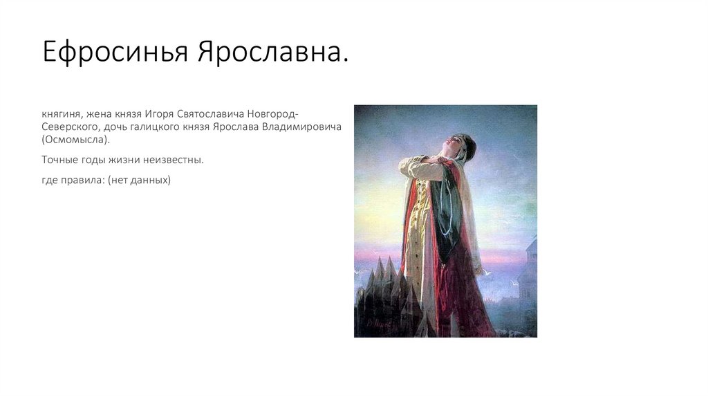 Ефросинья Ярославна.княгиня, жена князя Игоря Святославича НовгородСеверского, дочь галицкого князя Ярослава Владимировича