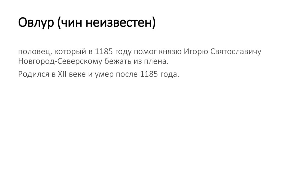 Овлур (чин неизвестен)половец, который в 1185 году помог князю Игорю Святославичу