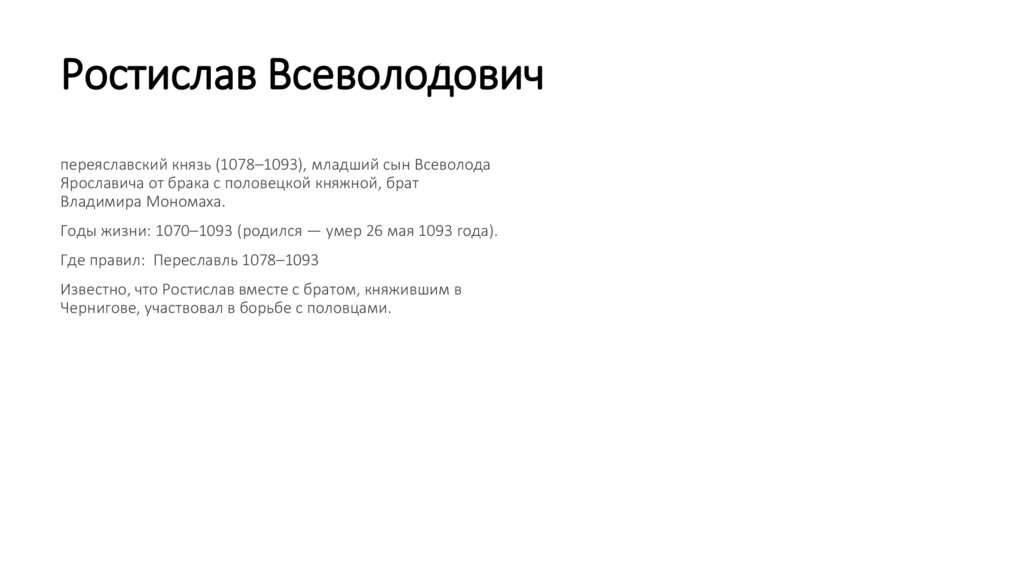 Ростислав Всеволодовичпереяславский князь (1078–1093), младший сын Всеволода