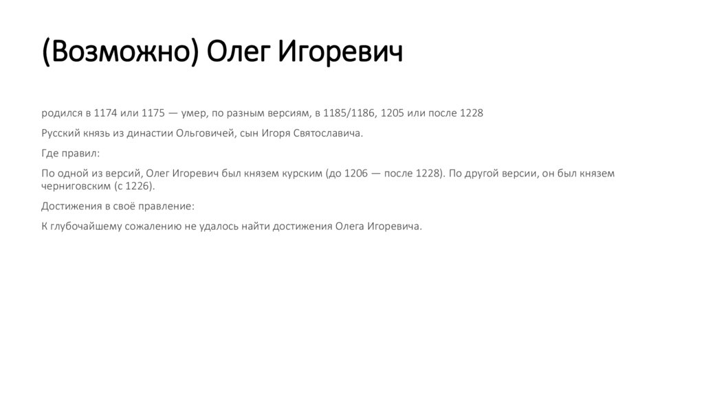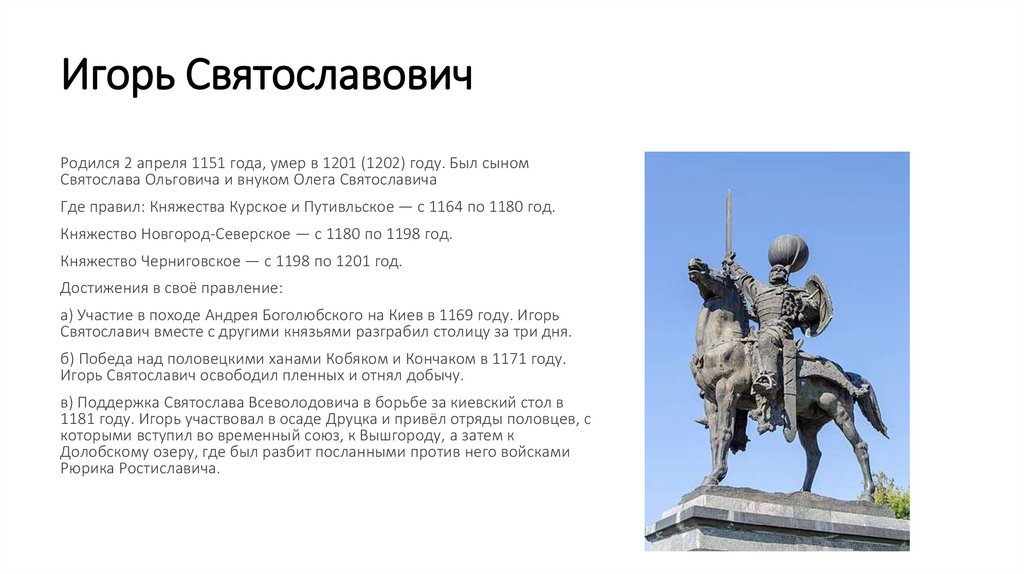 Игорь СвятославовичРодился 2 апреля 1151 года, умер в 1201 (1202) году. Был сыном