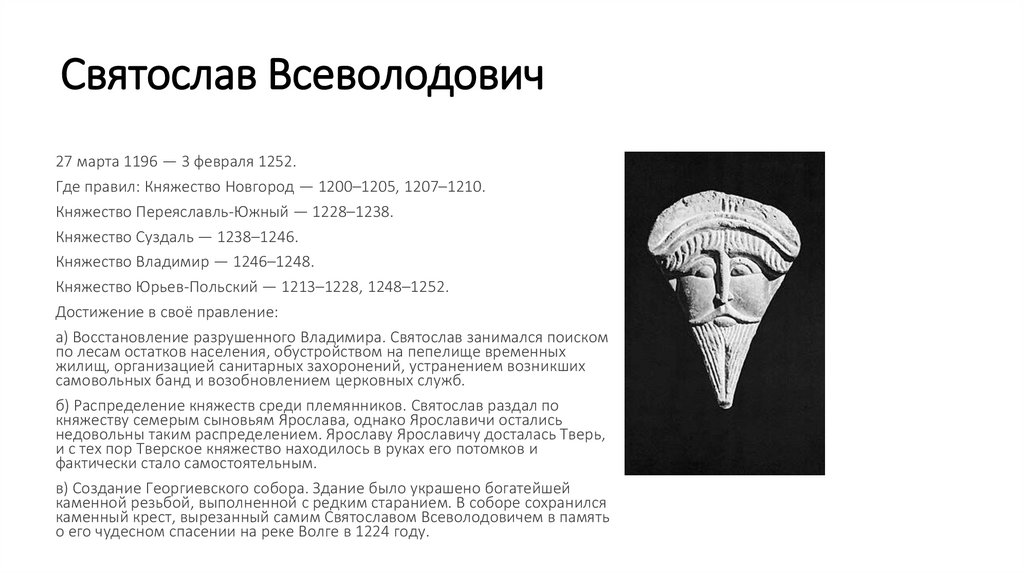 Святослав Всеволодович27 марта 1196 — 3 февраля 1252.