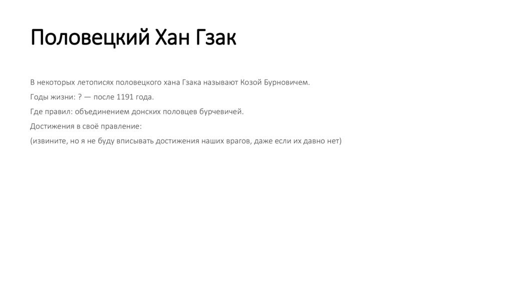 запальчивый, «мудролюбивый» и непостоянный. Всю жизнь провёл в походах на половцев и в
