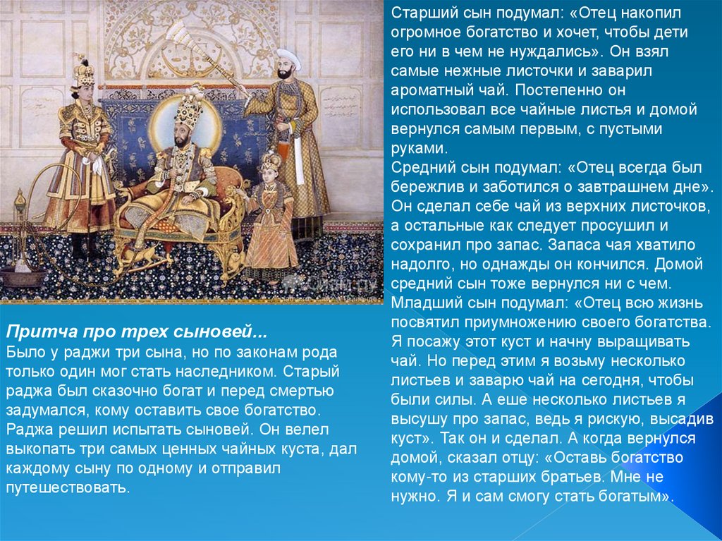 Притча про трех сыновей...Было у раджи три сына, но по законам рода