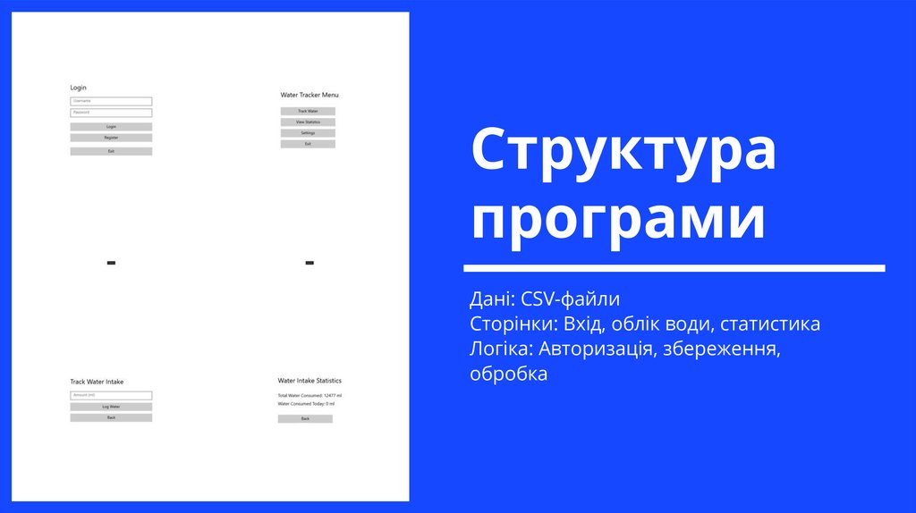 Сторінки: Вхід, облік води, статистика