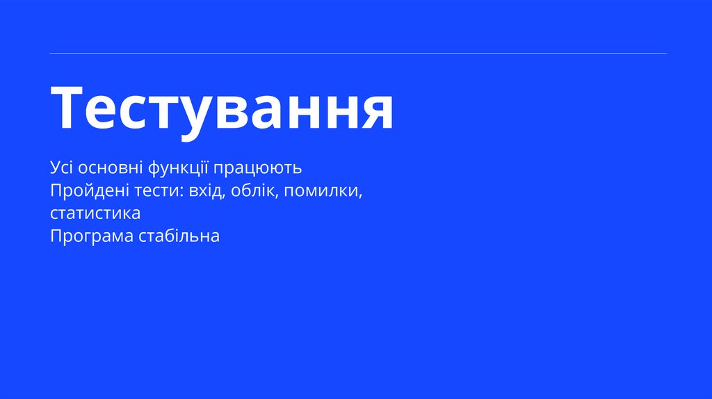 ТестуванняУсі основні функції працюють