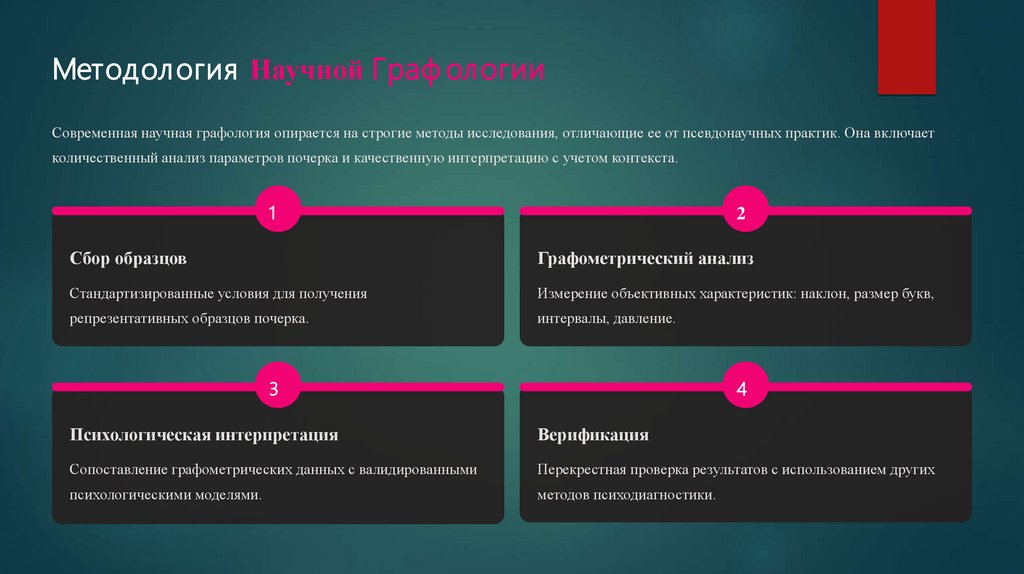 Методология Научной Граф ологииСовременная научная графология опирается на строгие методы исследования, отличающие ее от псевдонаучных практик. Она включает