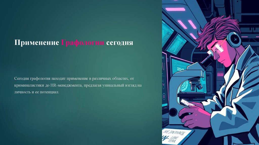 Применение Графологии сегодняСегодня графология находит применение в различных областях, от