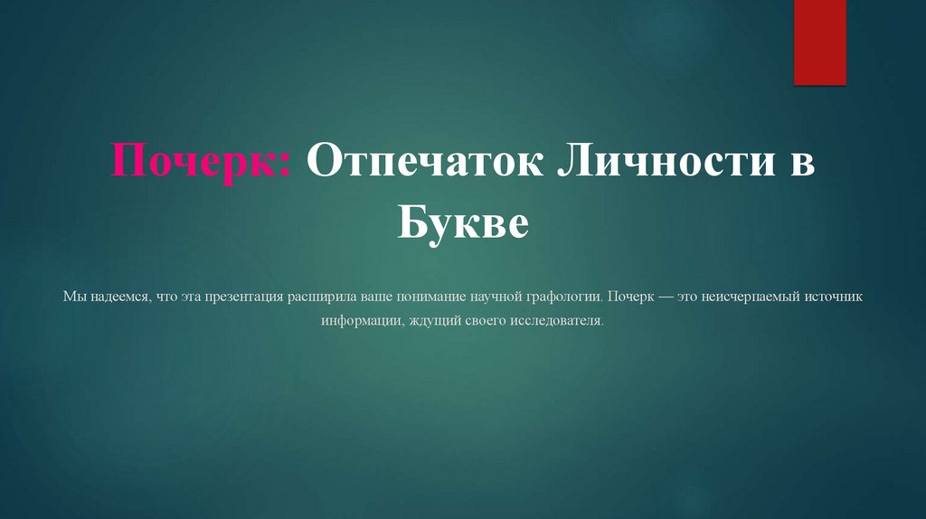 Мы надеемся, что эта презентация расширила ваше понимание научной графологии. Почерк — это неисчерпаемый источник