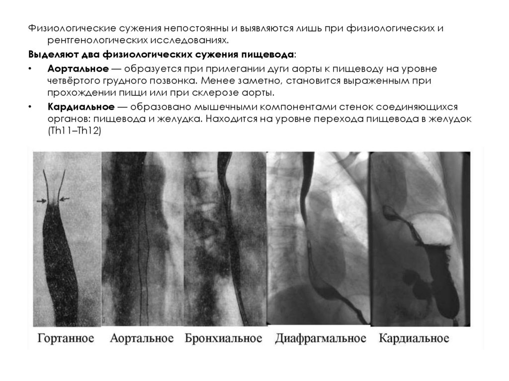 пищевода, контуры, эластичность стенок, патологические сужения, ампулообразные
