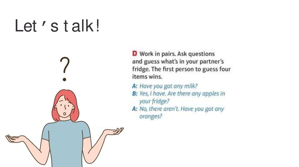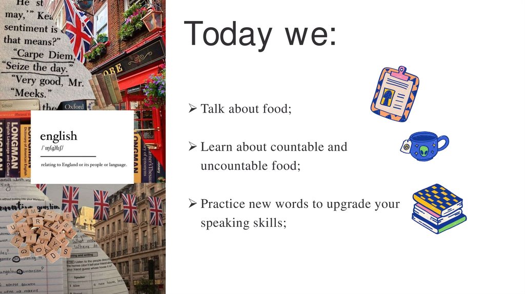 Today we:Talk about food;