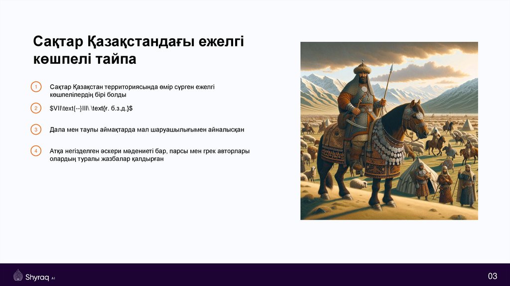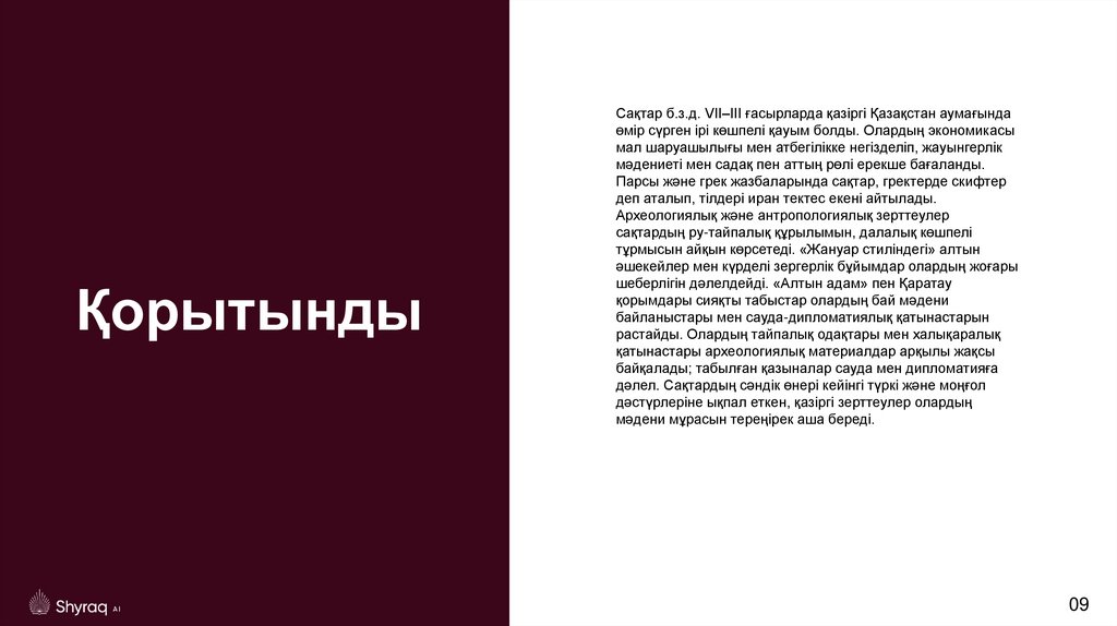 ҚорытындыСақтар б.з.д. VII–III ғасырларда қазіргі Қазақстан аумағында