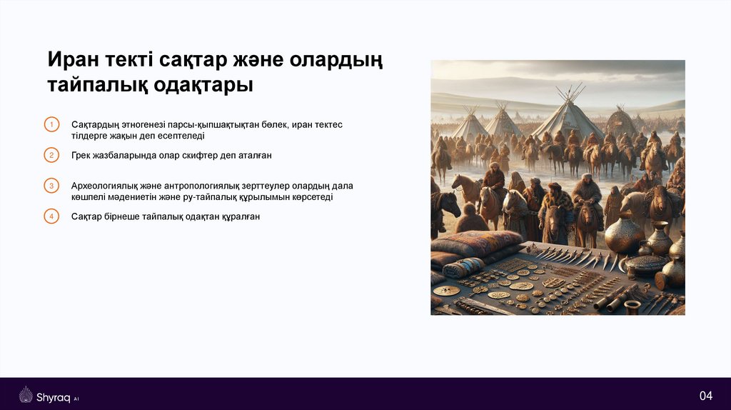 көшпелі мәдениетін және ру-тайпалық құрылымын көрсетеді