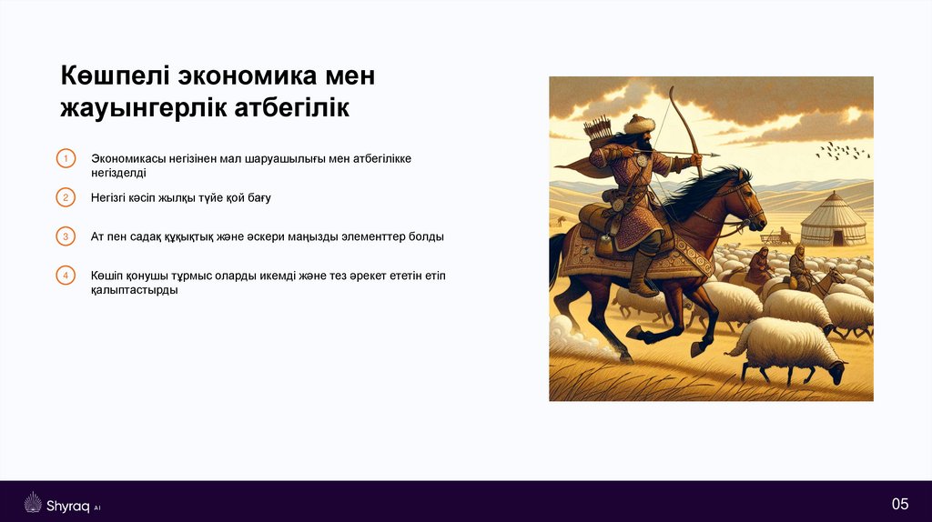 мал шаруашылығы мен атбегілікке негізделіп, жауынгерлік