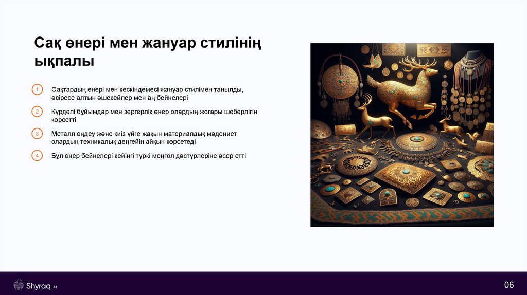 тұрмысын айқын көрсетеді. «Жануар стиліндегі» алтын