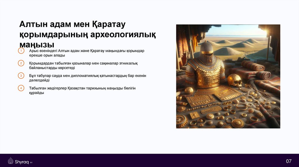 шеберлігін дәлелдейді. «Алтын адам» пен Қаратау