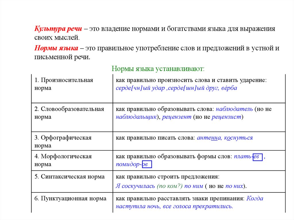 Культура речи – это владение нормами и богатствами языка для выражениясвоих мыслей.