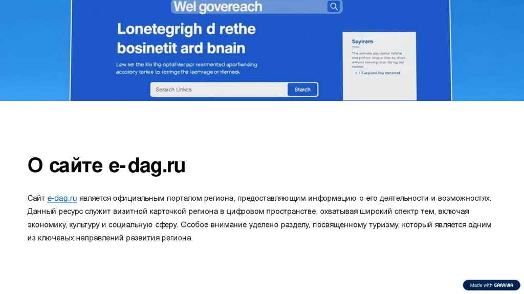 О сайте e-dag.ruСайт e-dag.ru является официальным порталом региона, предоставляющим информацию о его деятельности и возможностях.