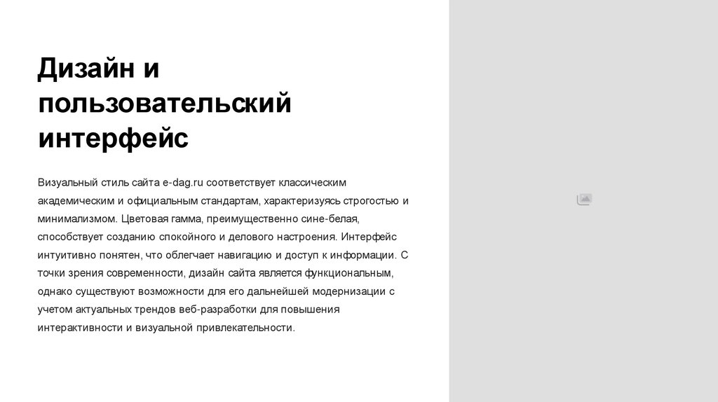 Визуальный стиль сайта e-dag.ru соответствует классическим