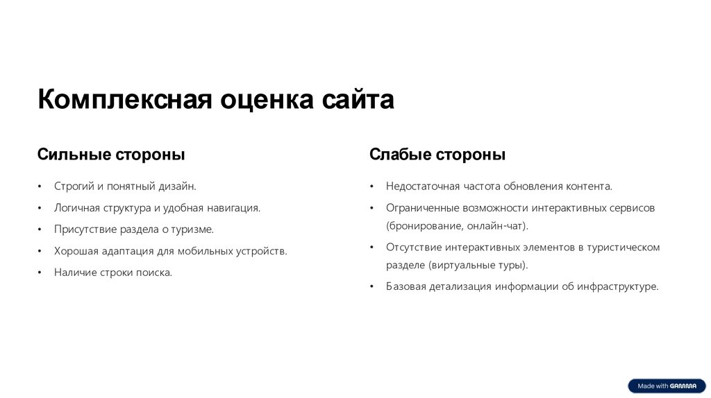 Комплексная оценка сайтаСильные стороны