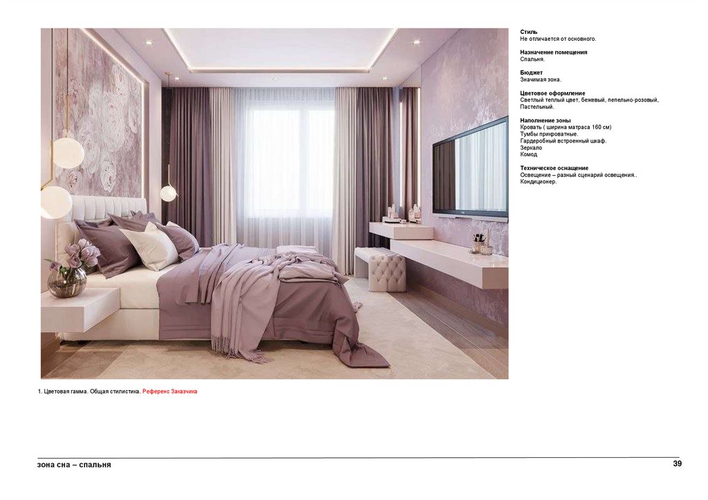 1. Цветовая гамма. Общая стилистика. Референс Заказчиказона сна – спальня