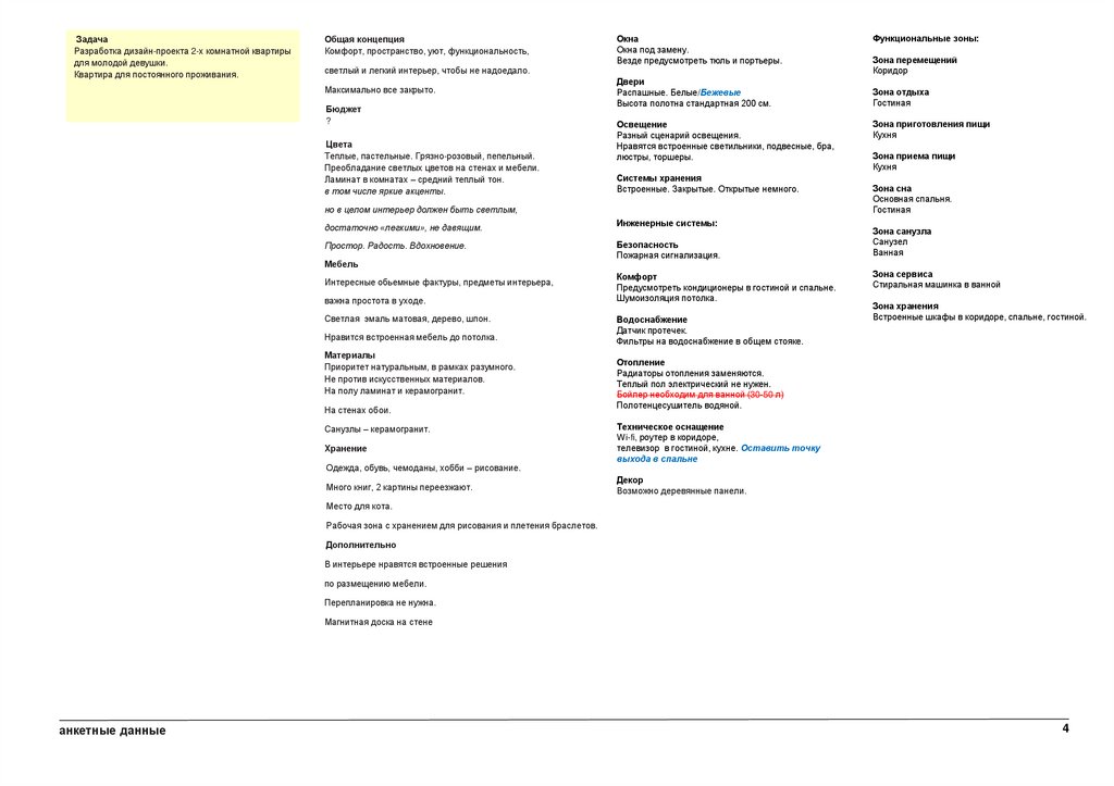 Дизайнер зафиксировал мысли и пожелания клиента,