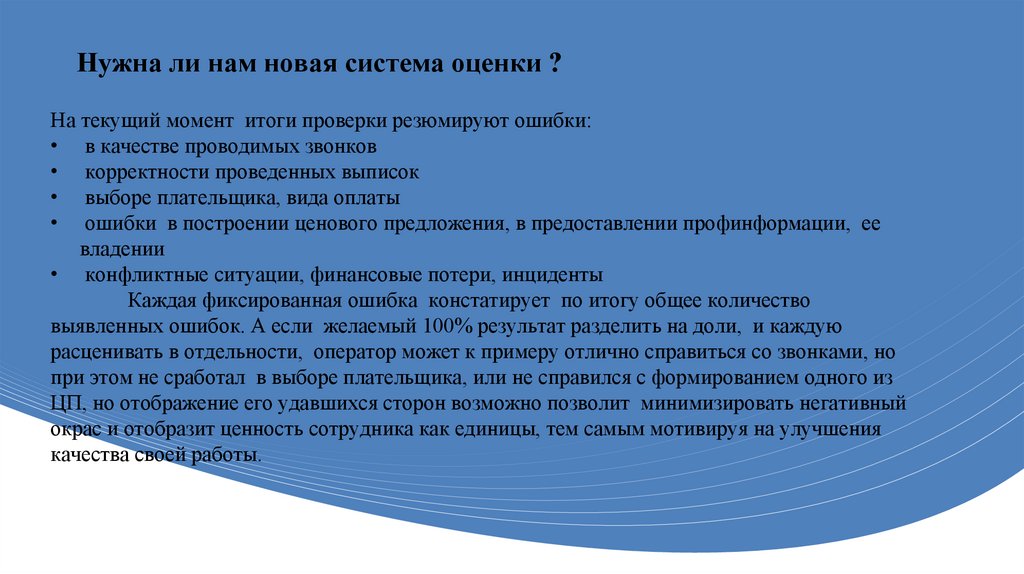 Нужна ли нам новая система оценки ?На текущий момент итоги проверки резюмируют ошибки: