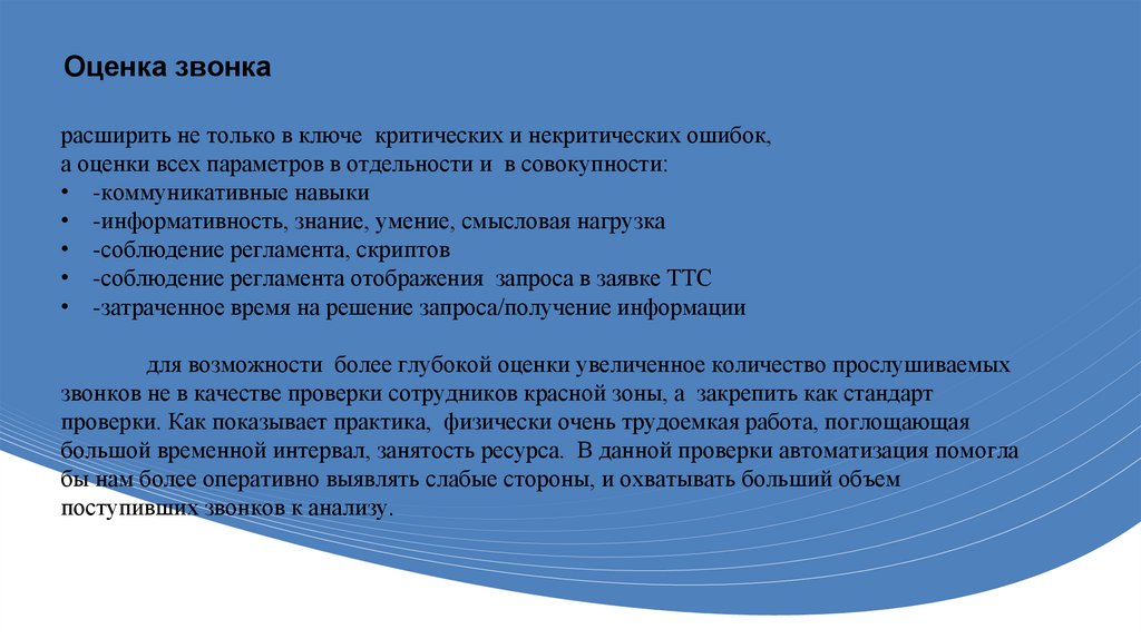 Оценка звонкарасширить не только в ключе критических и некритических ошибок,