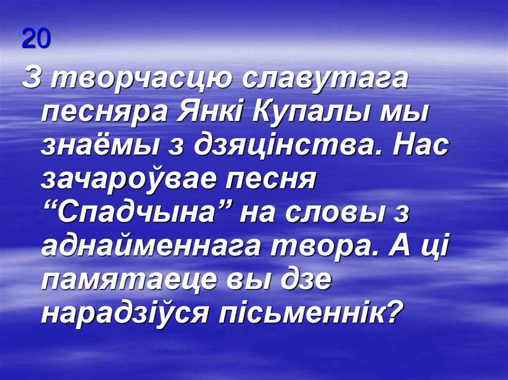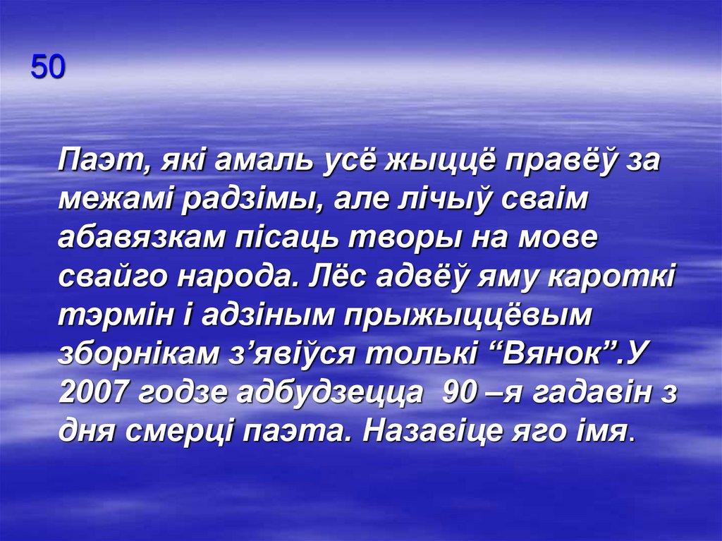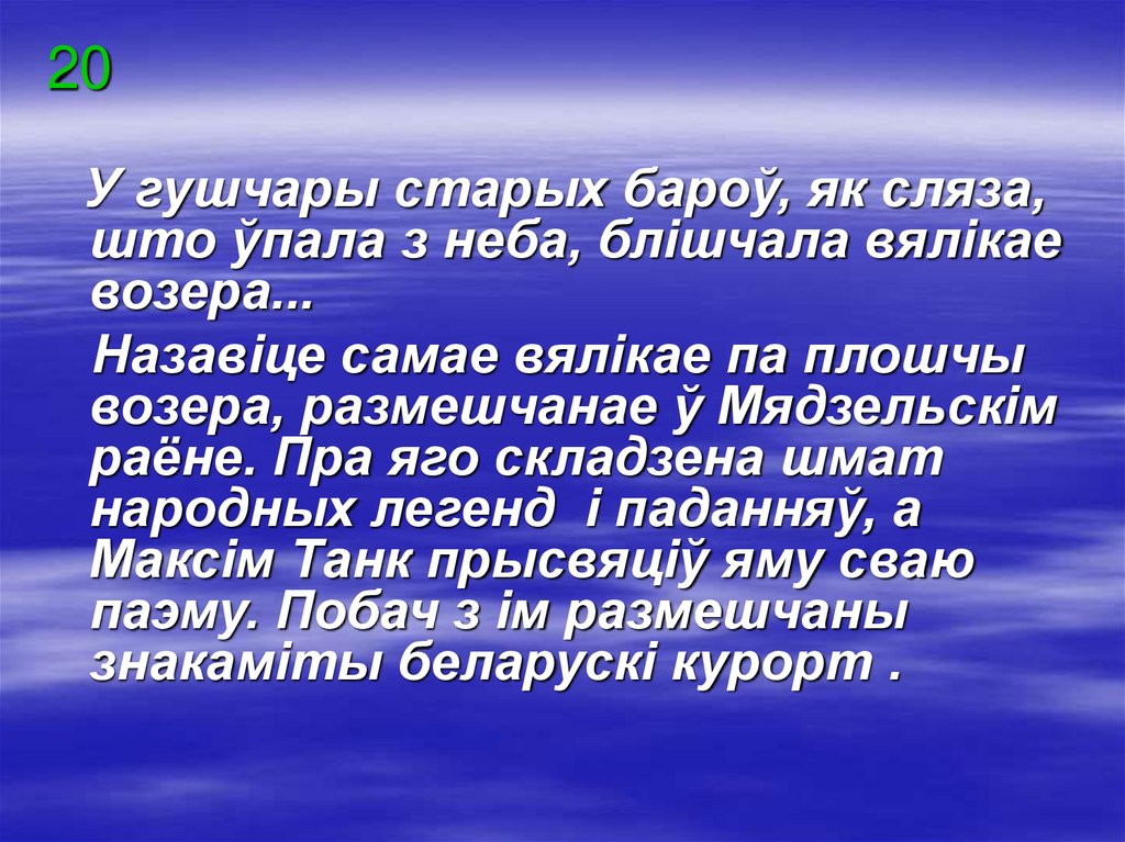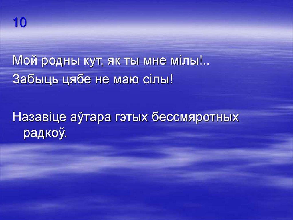 3. О Беларусь, мая калыска, Жыццё маё, прытулак мой! З гарачаю любоўю нізка Схіляюся перад табой. Зямны паклон табе, радзіма,