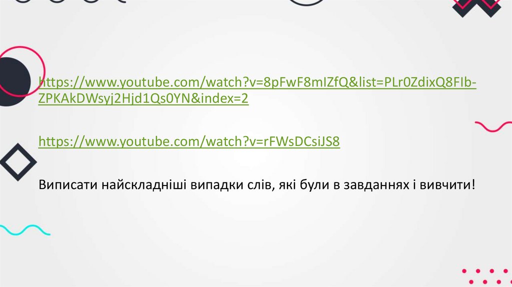 Виписати найскладніші випадки слів, які були в завданнях і вивчити!