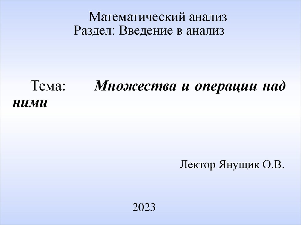 ОПРЕДЕЛЕНИЕ. Множеством назовем совокупность