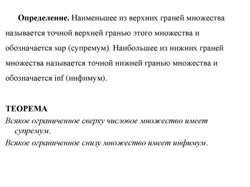 Определение. Наименьшее из верхних граней множестваназывается точной верхней гранью этого множества и
