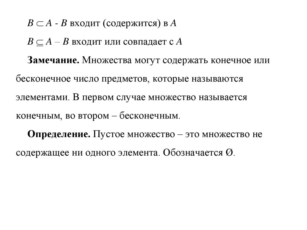 B A - B входит (содержится) в AB A – B входит или совпадает с A