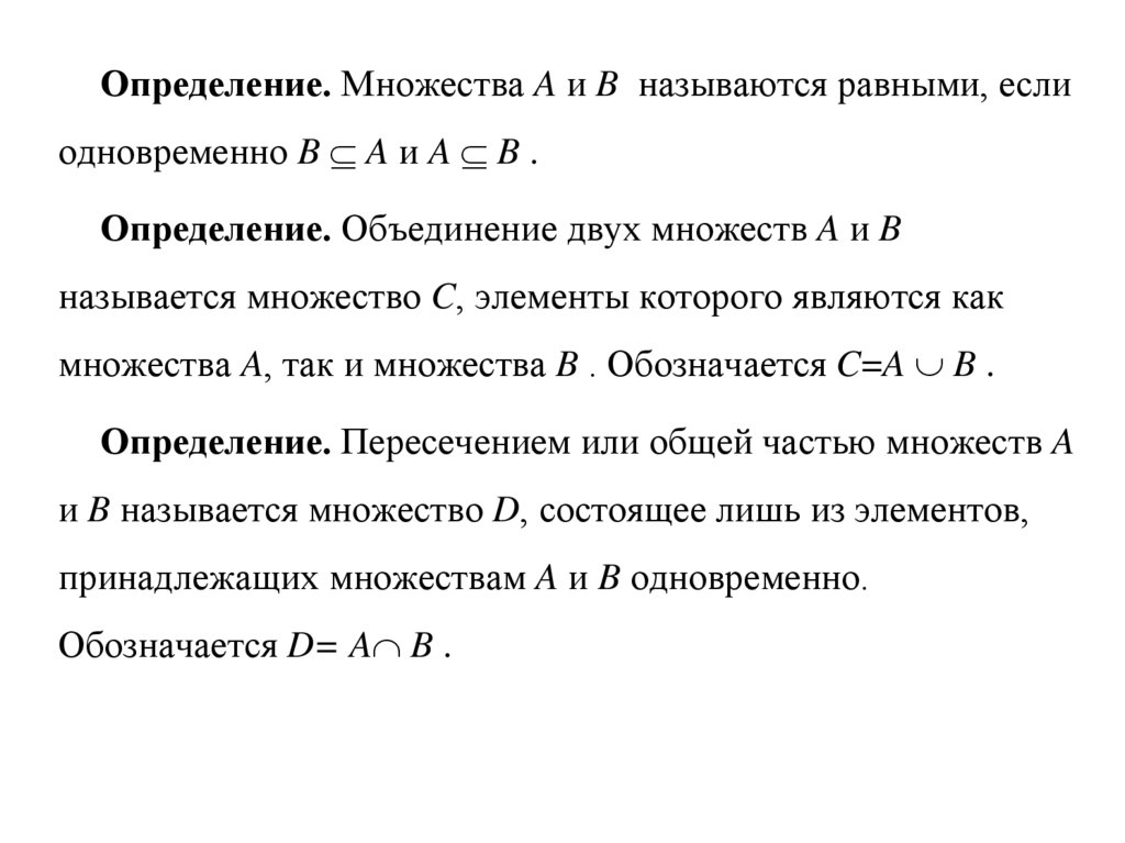 Определение. Множества A и B называются равными, еслиодновременно B A и A B .