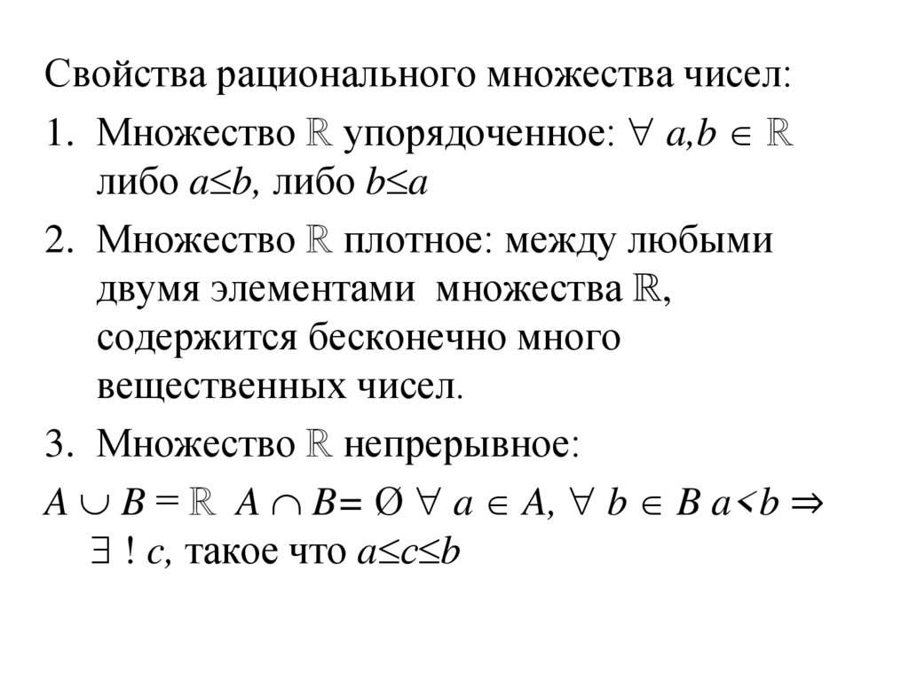 Свойства рационального множества чисел:1. Множество ℝ упорядоченное: a,b ℝ