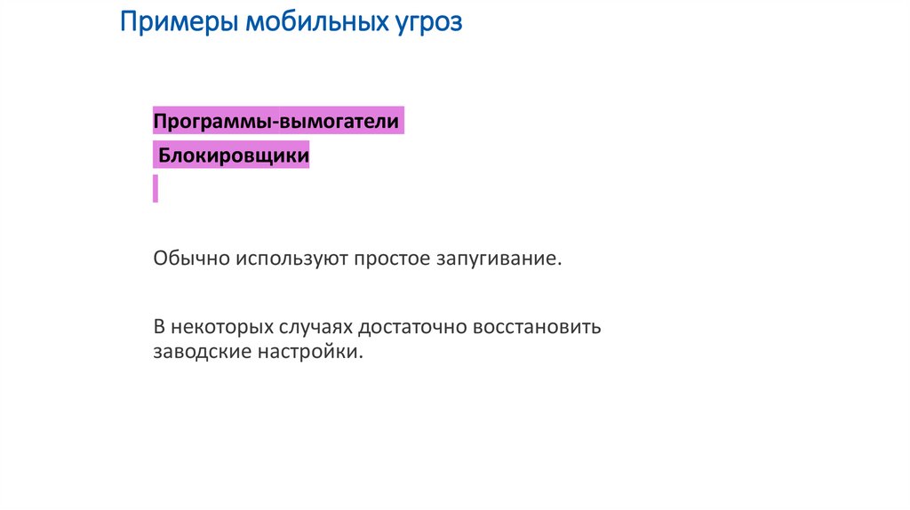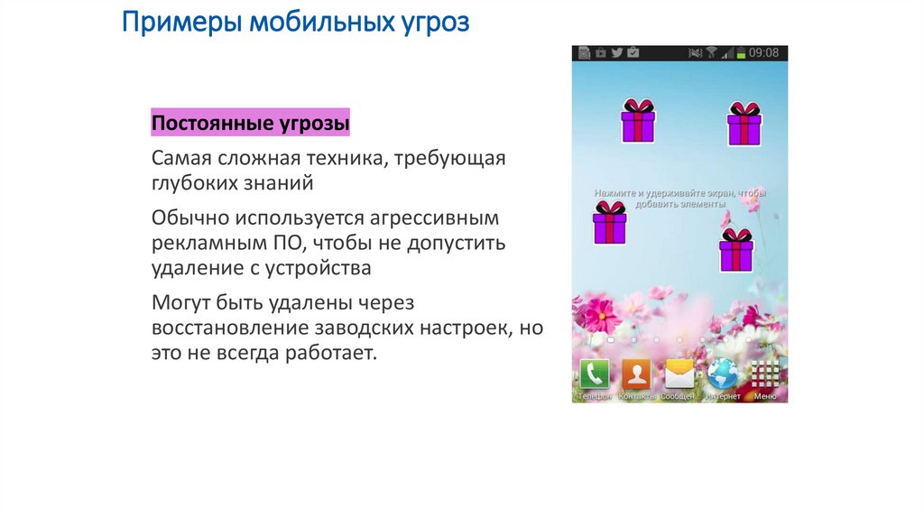 Примеры мобильных угрозПостоянные угрозы