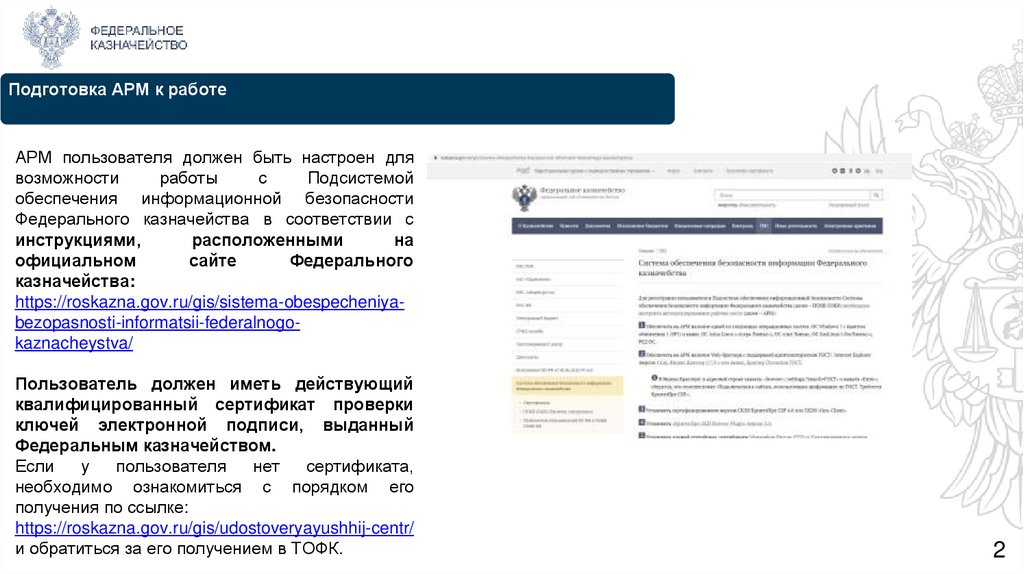 Подготовка АРМ к работеАРМ пользователя должен быть настроен для