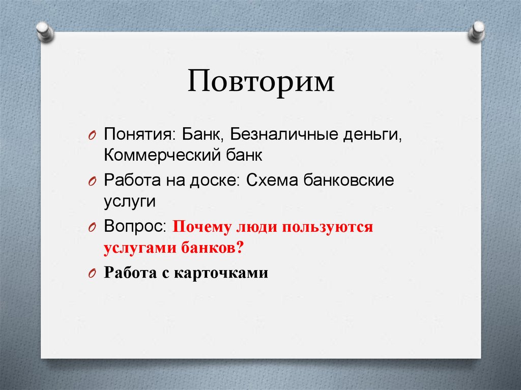 O Понятия: Банк, Безналичные деньги,Коммерческий банк