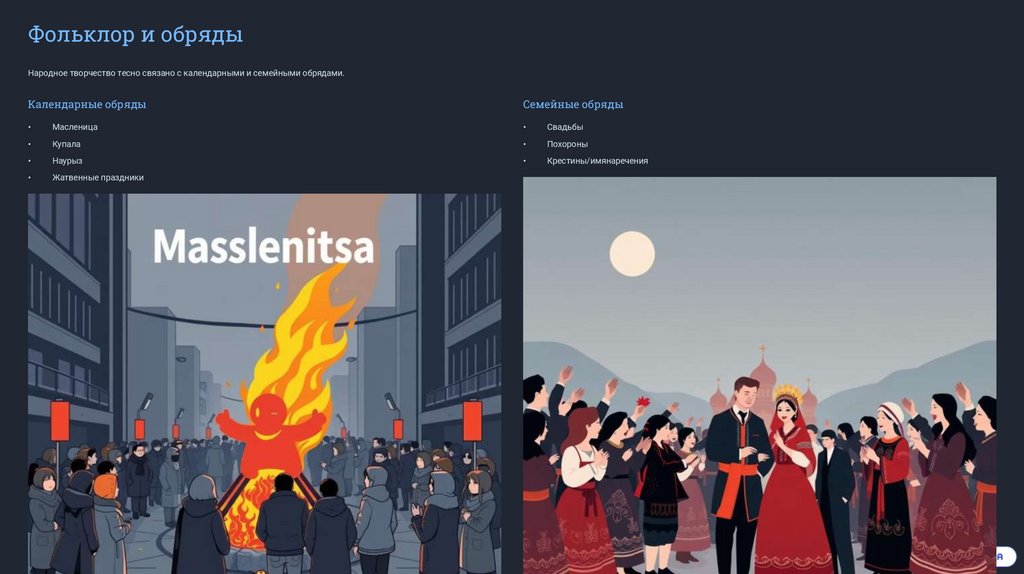 Фольклор и обрядыНародное творчество тесно связано с календарными и семейными обрядами.